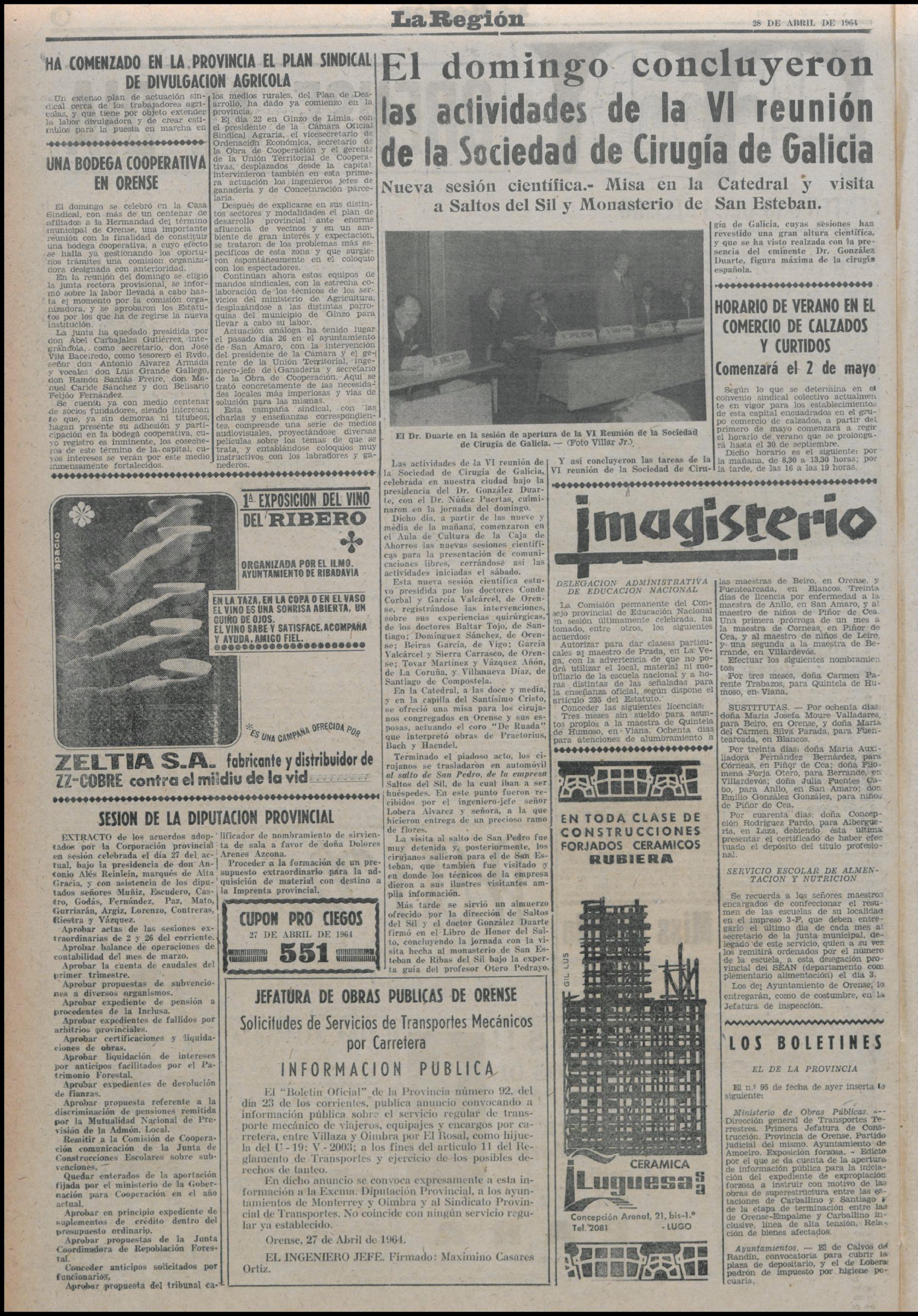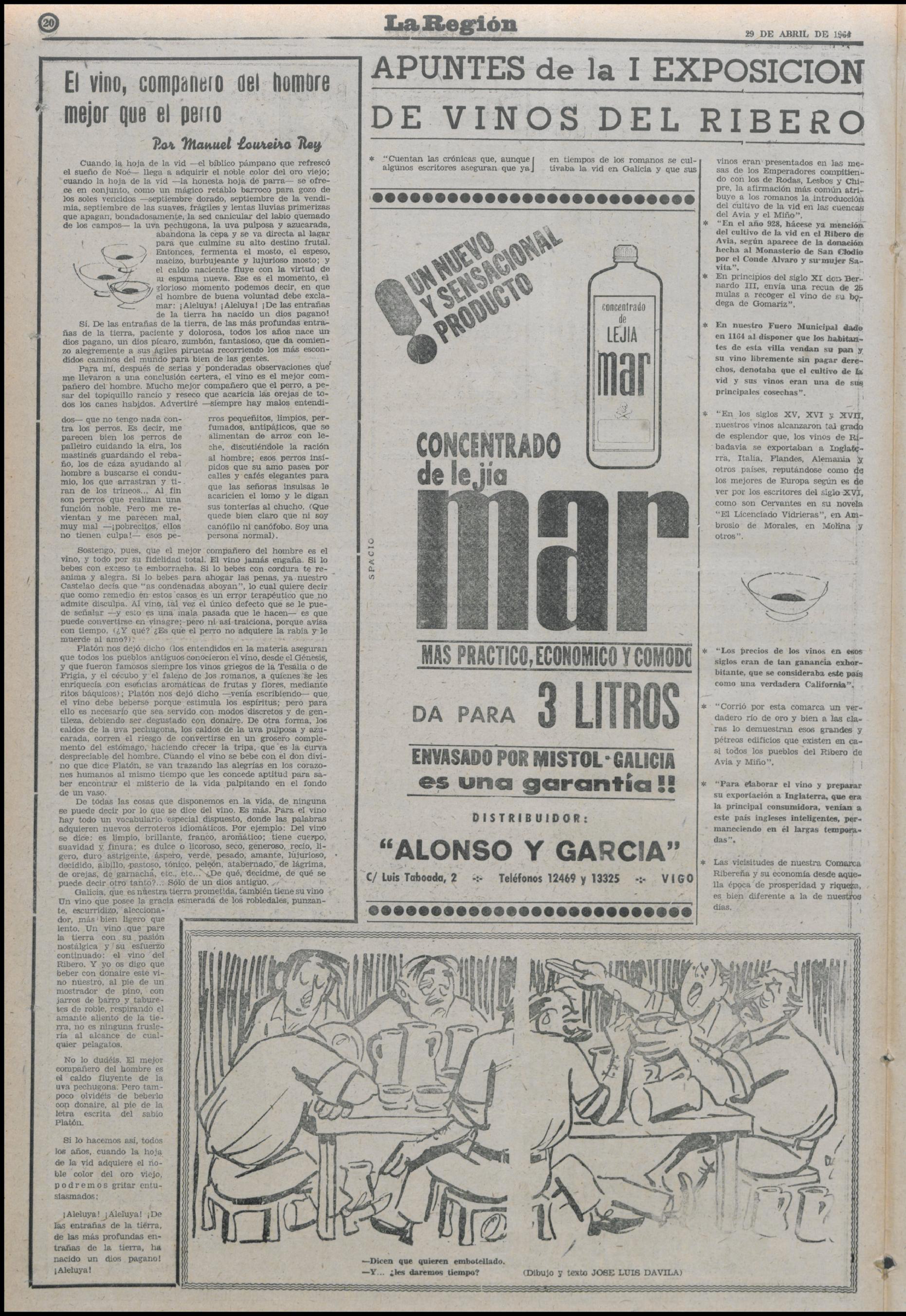 “En la taza, en la copa lo en él vaso él lo vine eres una sonrisa abierta, un guiño de ojos. Él lo vine sabe y satisface, acompaña y ayuda, amigo fiel”. Con estas palabras anunciaba La Región a I Feria-Exposición del Viño del Ribeiro el 28 de abril del 1964, coincidiendo con las fiestas de San Pedro.